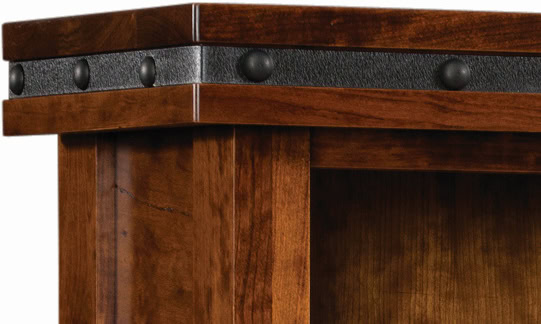 The Pasadena Bookcase is a unique option, perfect for a living space or office. This large bookcase has plenty of shelving, so you can display books or other trinkets. Featuring a steel band and buttons and an interesting shelving arrangement, this bookcase makes quite a statement. Amish craftsmen take great care creating this piece, so it will stand the test of time.