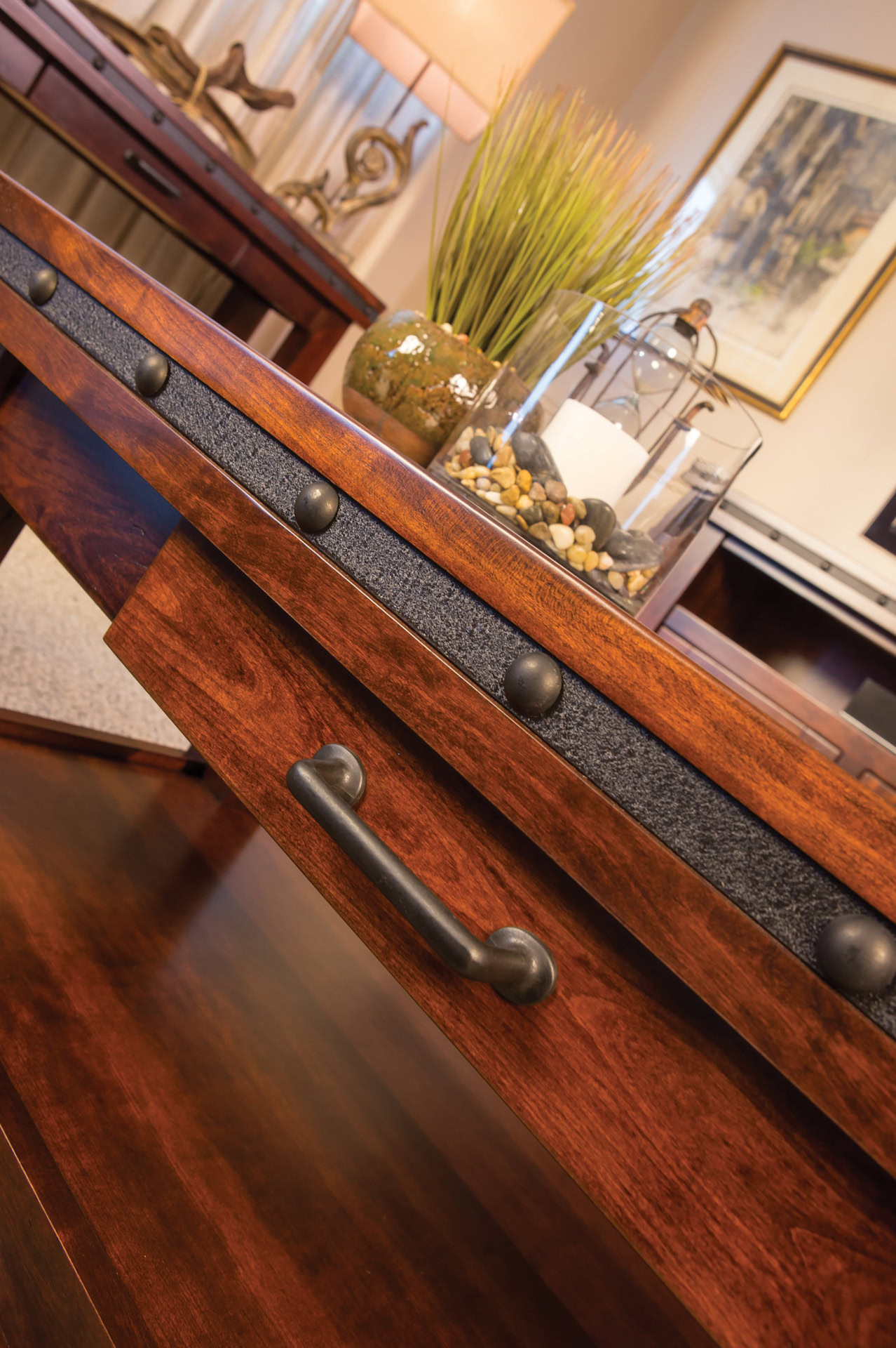 The Pasadena Occasional Table Set offers beauty and utility in one distinct package. This set features sleek, clean lines as well as rugged steel bands and buttons. The open storage provides ample space, so you can neatly display or store all of your items. You truly cannot go wrong with this set!