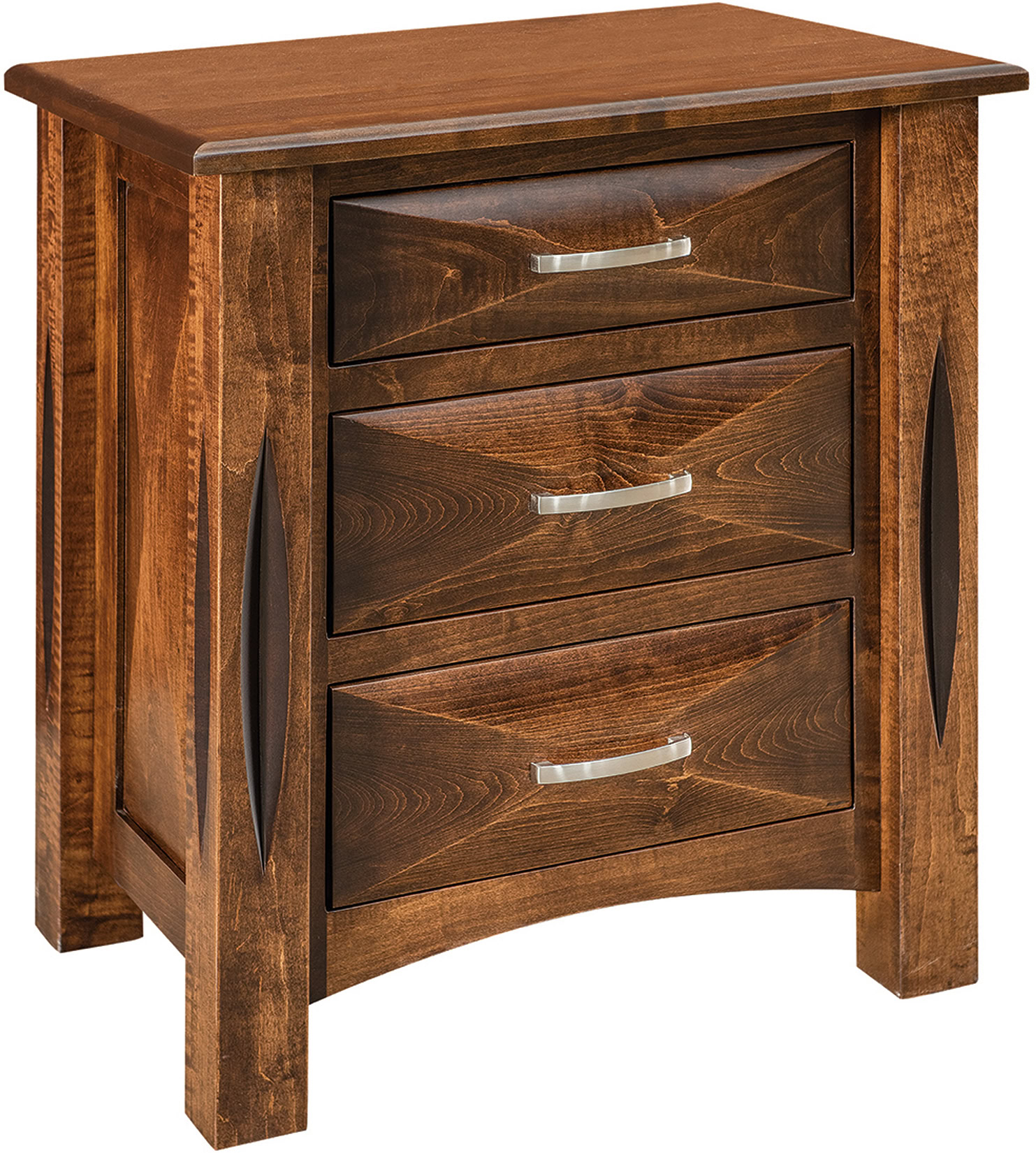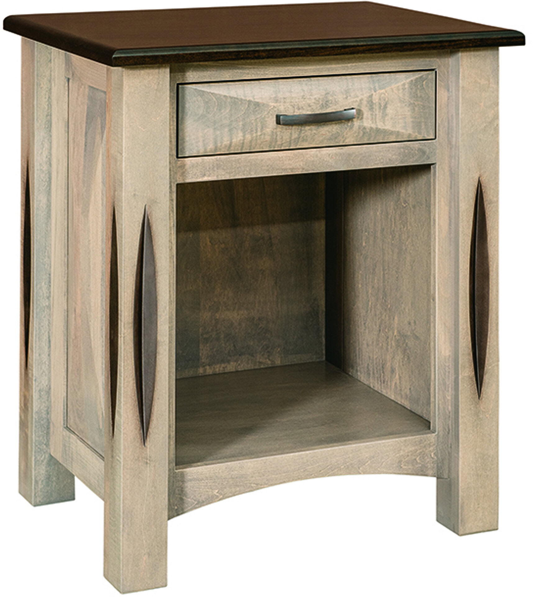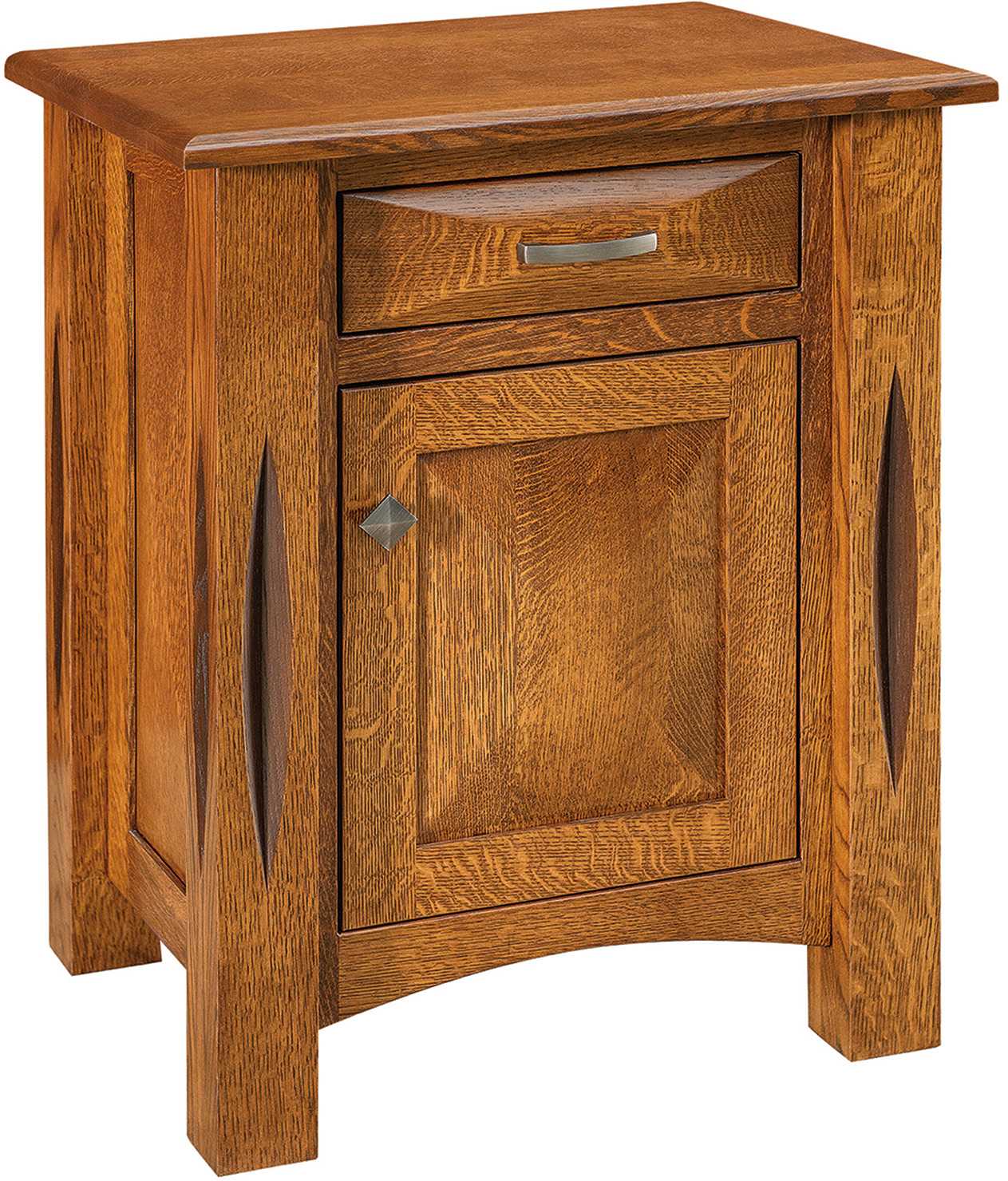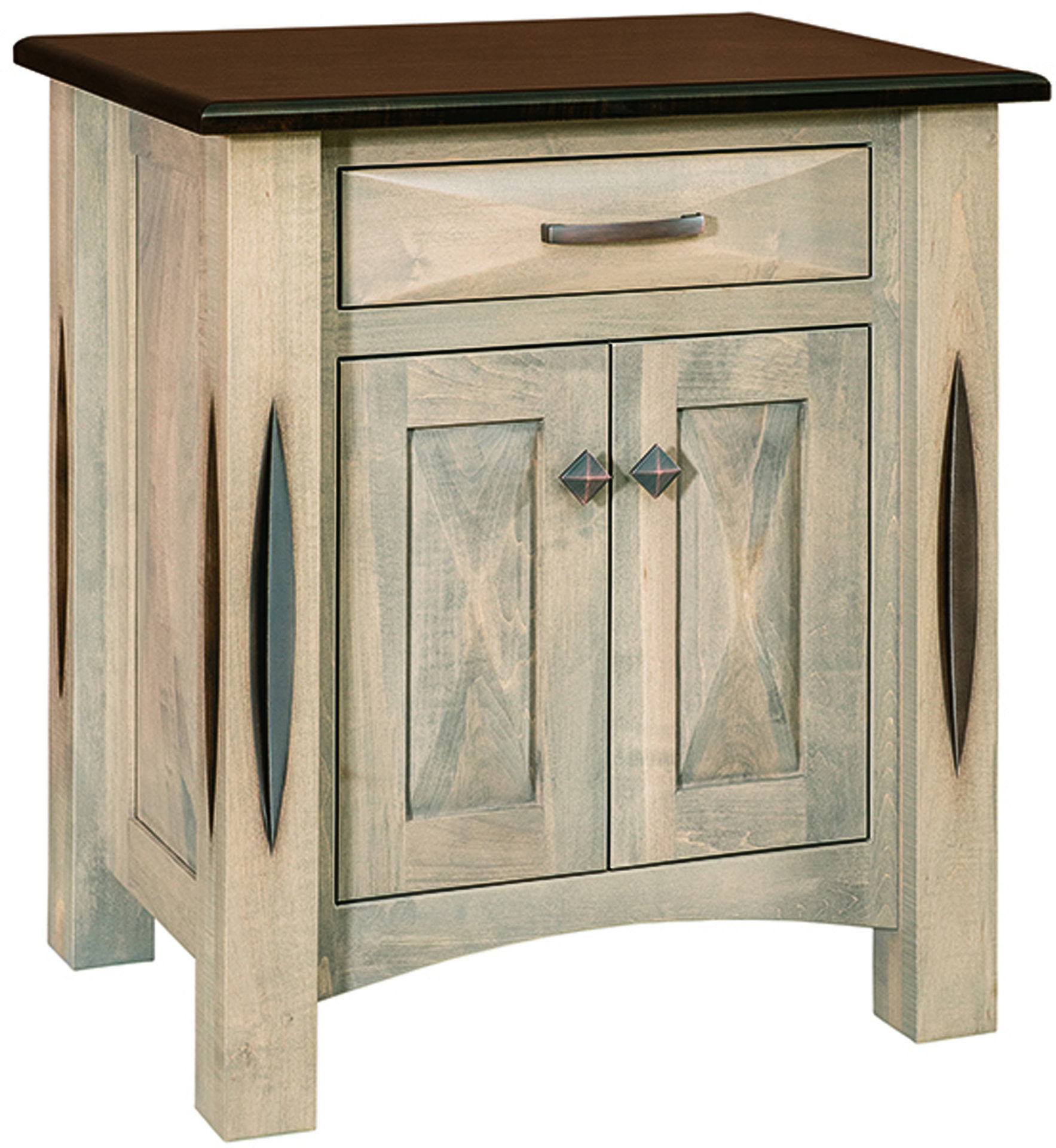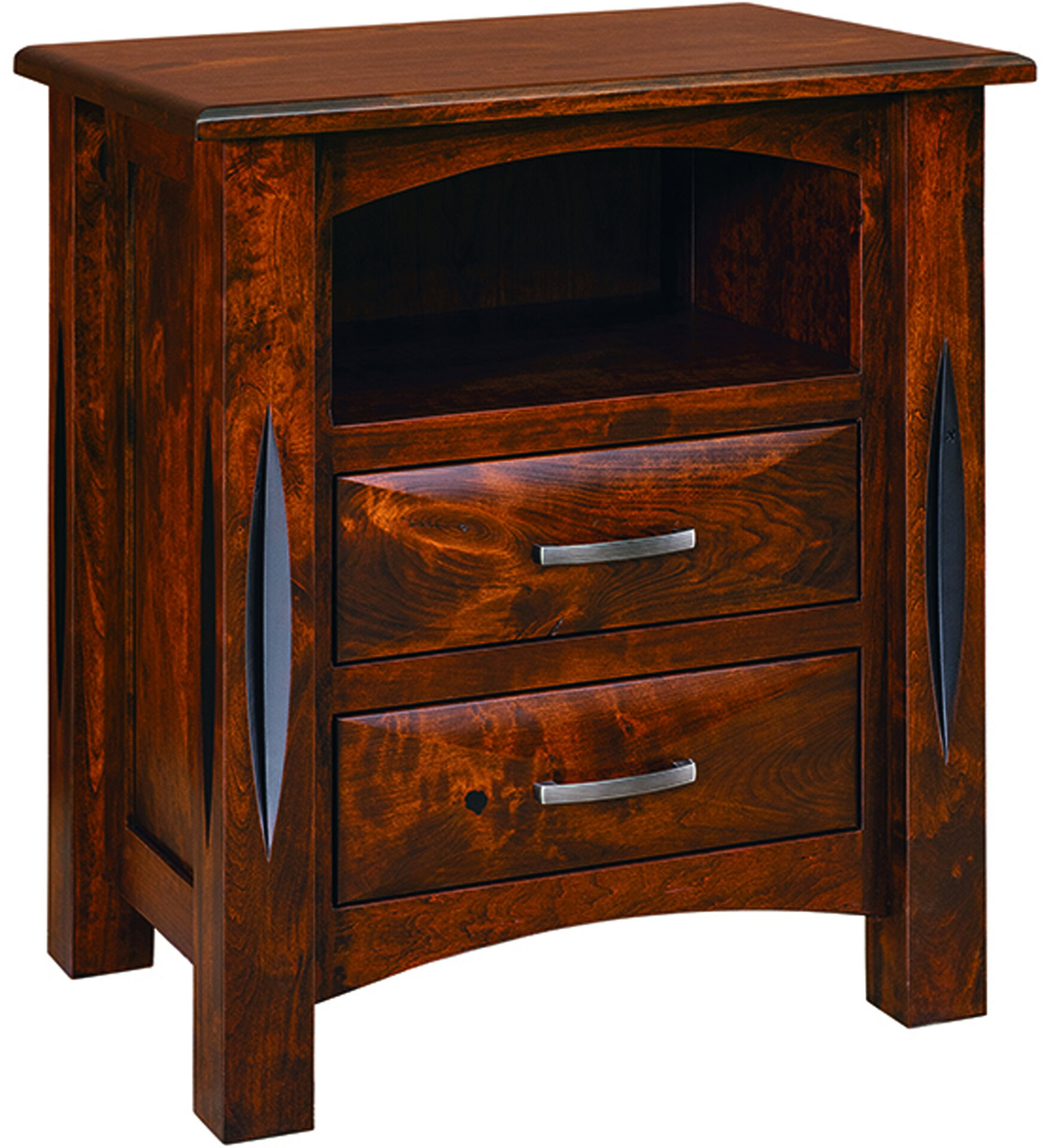 Burnished groove accents in the posts flank the exclusive raised panel design of the drawer fronts in the Ravena Nightstand. Also, we offer the nightstand in a variety of configurations. Such as different combinations of drawers, doors and open space. What’s more, the drawers open full-extension. This means easy access to everything inside. While the dovetail drawer joints are unsurpassed in strength. So you couldn’t ask for a more elegant – and practical – nightstand. Amish artisans handcraft each Ravena Nightstand. In fact, they use top hardwoods. Like oak, maple and cherry. So the nightstand is heirloom-quality! Now, make it yours. Simply complete the customizing fields below. With your choices for wood specie, finish and more. Or call 855-768-3270.
