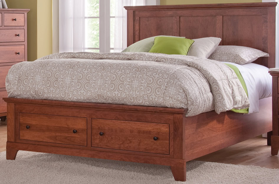 Skilled Amish artisans constructed the Riceland Paneled Bed from solid hardwood. Therefore creating a sturdy bed for your Bedroom. You can rest knowing it will last for years to come. Designed with two drawers in the footboard, this unique bed will provide extra storage space for any of your needs. The possibilities are endless. Add this bed to your current collection or take a look at our other Riceland products. Such as the chest, dresser, and nightstand.