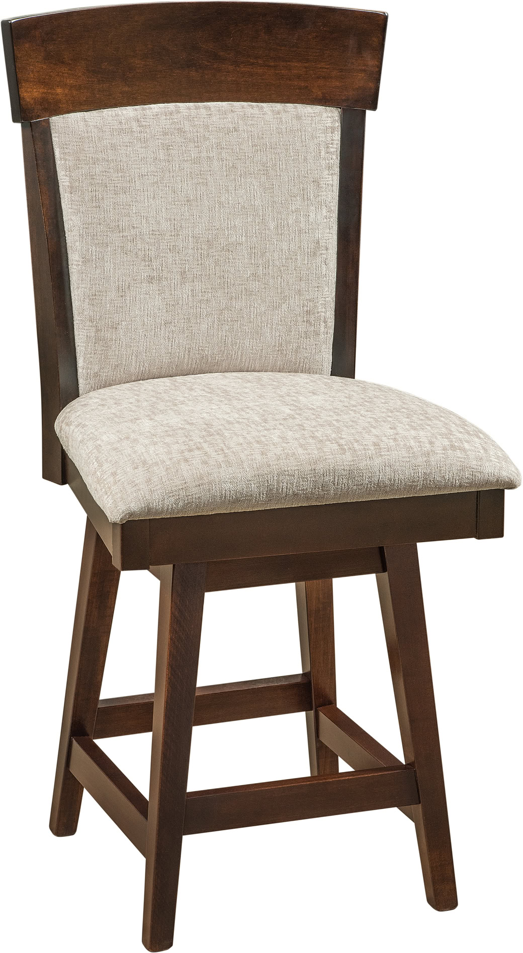 The Riverside Swivel Bar Stool is crafted from the finest hardwoods. It features a comfortable seat covered in your choice of fabric. Since our Amish artisans create each piece upon ordering, it’s always perfect.