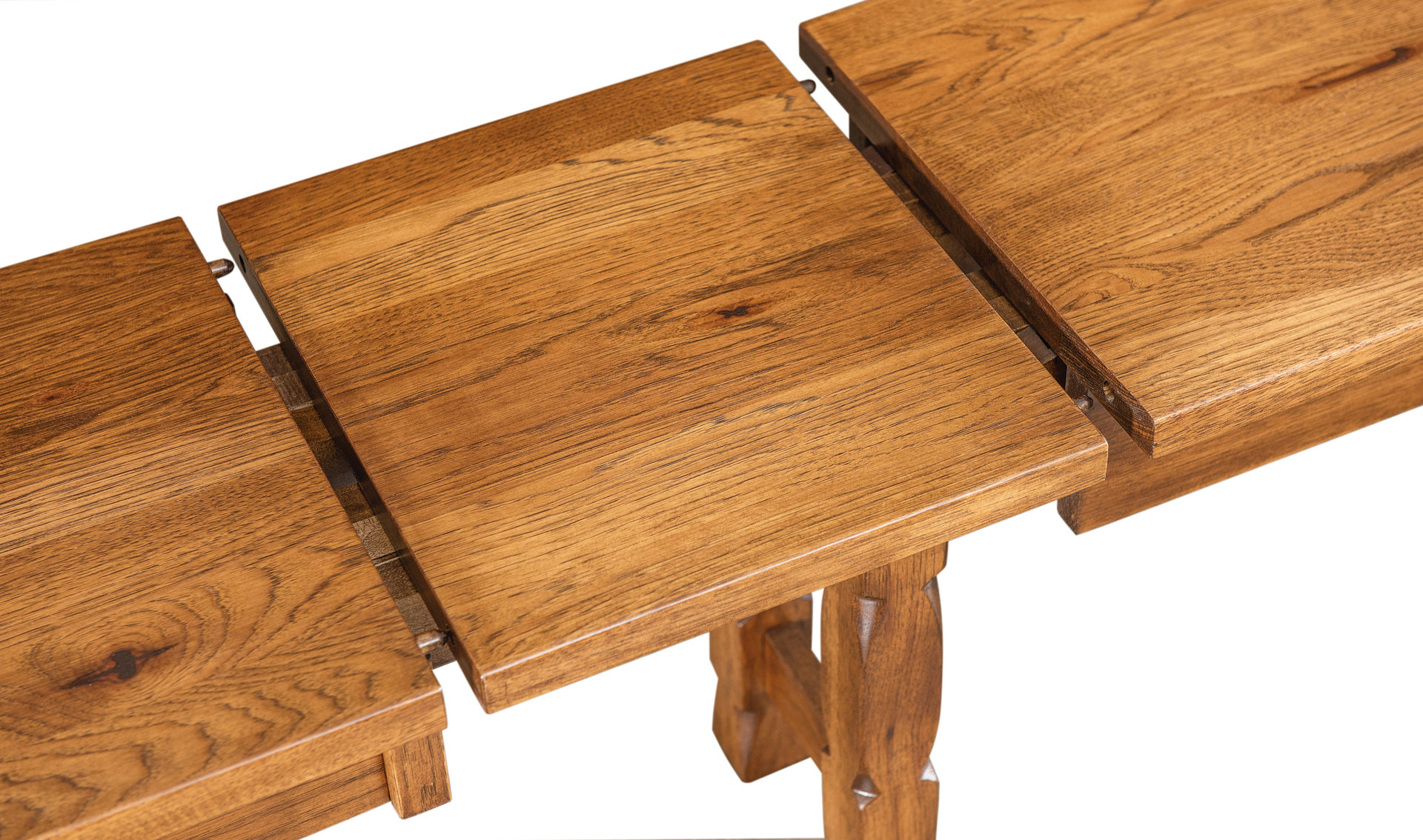 Notched legs add a trendy edge to the Mission style. And that makes the Rock Island Collection Extenda Bench stand apart from the pack. What an eye-catching bench for your home! Also, it’s Amish-built from solid hardwood. (We’re showing the unit in rustic hickory with Tavern stain.) The top is 1-inch-thick solid hardwood. So the bench is sturdy. Durable. Also heirloom-quality! In addition, we offer the bench in a length of 4 feet. Yet, you can extend it with up to four leaves. A leaf-storage box makes storage easy. So the Rock Island Collection Extenda Bench is ideal for your dining table. Or, you’ll find the useful – and attractive — in your entryway or hallway. Now, make it yours. Simply complete the customizing fields below. Also, make sure you include your choices for wood species, finish, and more. Or call 855-768-3270.