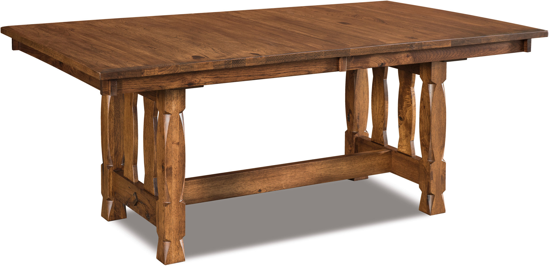 Exquisitely carved legs and slats combine with a 1 ¼-inch-thick solid hardwood top. Indeed, the Rock Island Dining Table is a handsome, eye-catching piece of furniture. We offer the table in widths of 42 and 48 inches. Also, lengths of 60, 66, and 72 inches. Wish to extend the table? Simply request up to four leaves. (They self-store below the tabletop.) So you can order the Rock Island Dining Table in the size that’s just right for your needs and desires. Leg levelers come in handy in the event of uneven floors. Our Amish cabinetmakers build the table. Also, they use top regional hardwoods (such as rustic hickory with Tavern stain). No wonder the table is heirloom-quality! Now, make it yours. Simply complete the customizing fields below. Also, make sure you include your choices for wood species, finish, and more. Or call 855-768-3270.