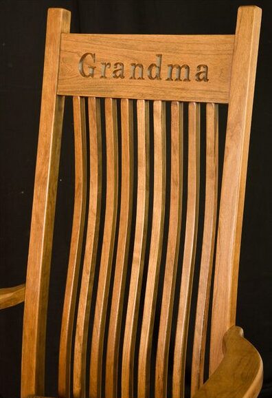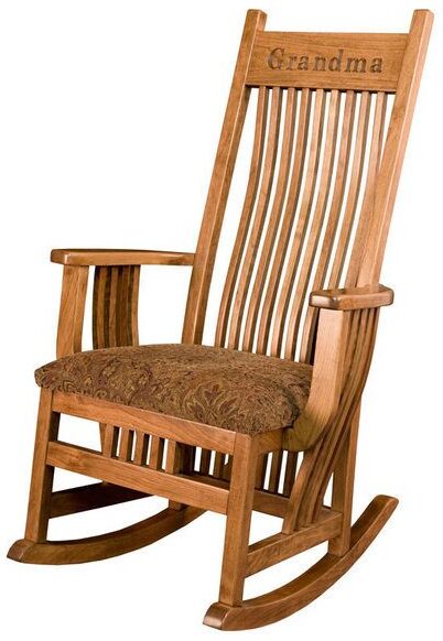 A beautiful engraved headboard accents the Royal Mission Grandma Rocker.