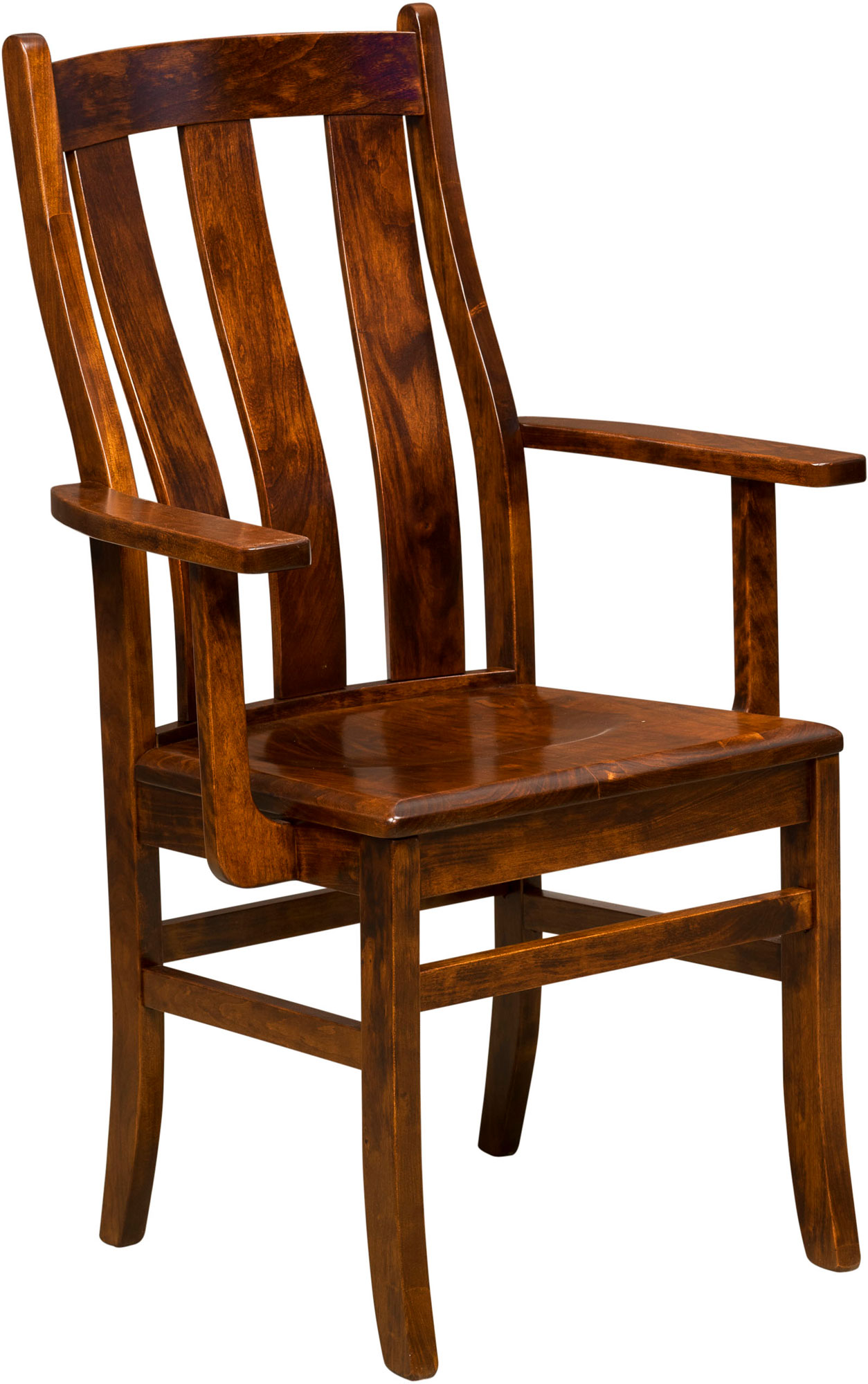 The Sahara Chair fills your need for a stately, comfortable and formal chair for your more traditional dining room. Check out the elegant cabinetry and rich finish! The curved slats provide great lumbar support, while the deep scoop seat enhances comfort. For even more comfort and appeal, request an upholstered seat, finished in fabric or leather. What’s more, you can order your set of chairs in any combination of side chairs and armchairs. Our Amish cabinetmakers build the chair. And they use top hardwoods like oak, maple and cherry (shown with Michael’s Cherry Stain). No wonder the piece is heirloom-quality! Now, make it yours. Simply fill out the customizing fields below. Also, make sure you include your choices for wood species, finish and more. Or call 855-768-3270 today.