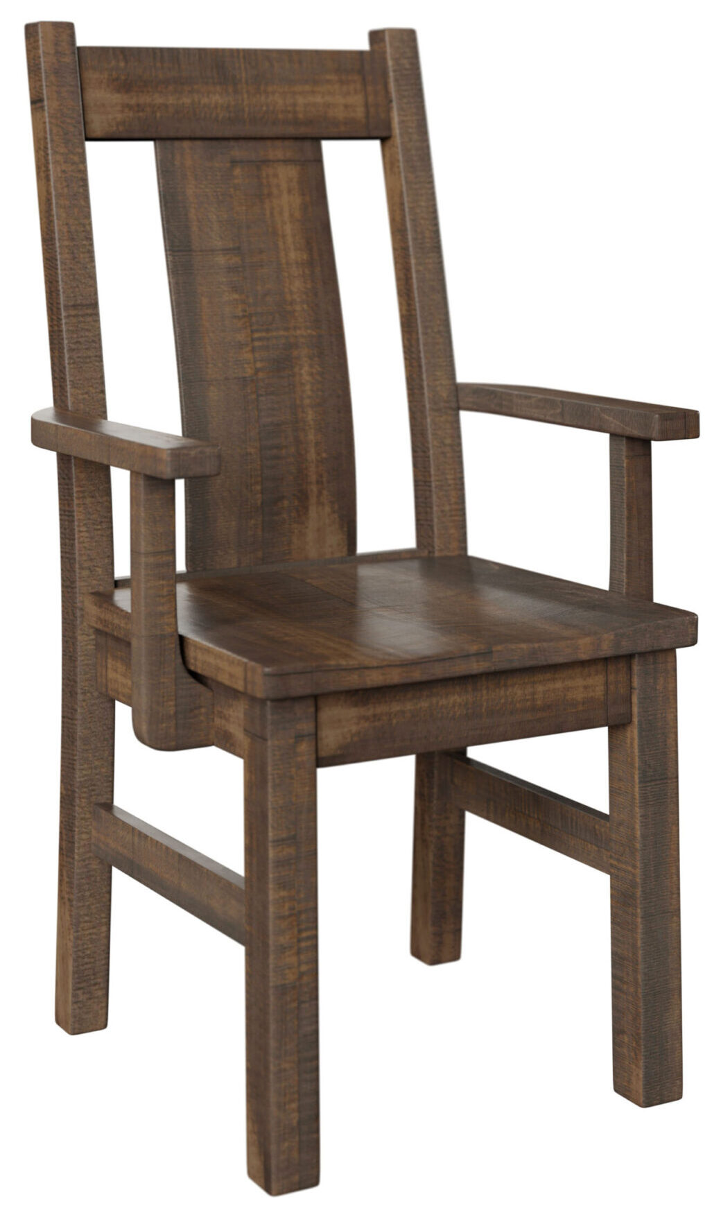 Like rustic furniture? Presenting a great-looking, comfortable and sturdy dining chair with a hint of rustic: The San Antonio Chair. The curved slat provides great back support. While the saddle scoop seat enhances comfort. For even greater comfort, request an upholstered seat finished in fabric or leather. Also, you can order your set of chairs with any combination of side chairs and armchairs. Our Amish cabinetmakers build the chair. And, they use top hardwoods like rough-sawn wormy maple (shown with FC 42000-2 Almond Stain). No wonder the chair is so sturdy and heirloom-quality! Now, make it yours. Simply complete the customizing fields below. Also, make sure you include your choices for wood species, finish and more. Or call 855-768-3270.