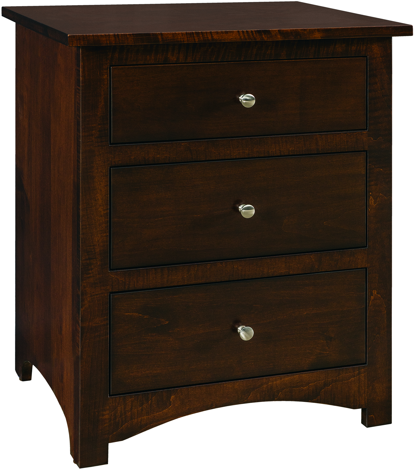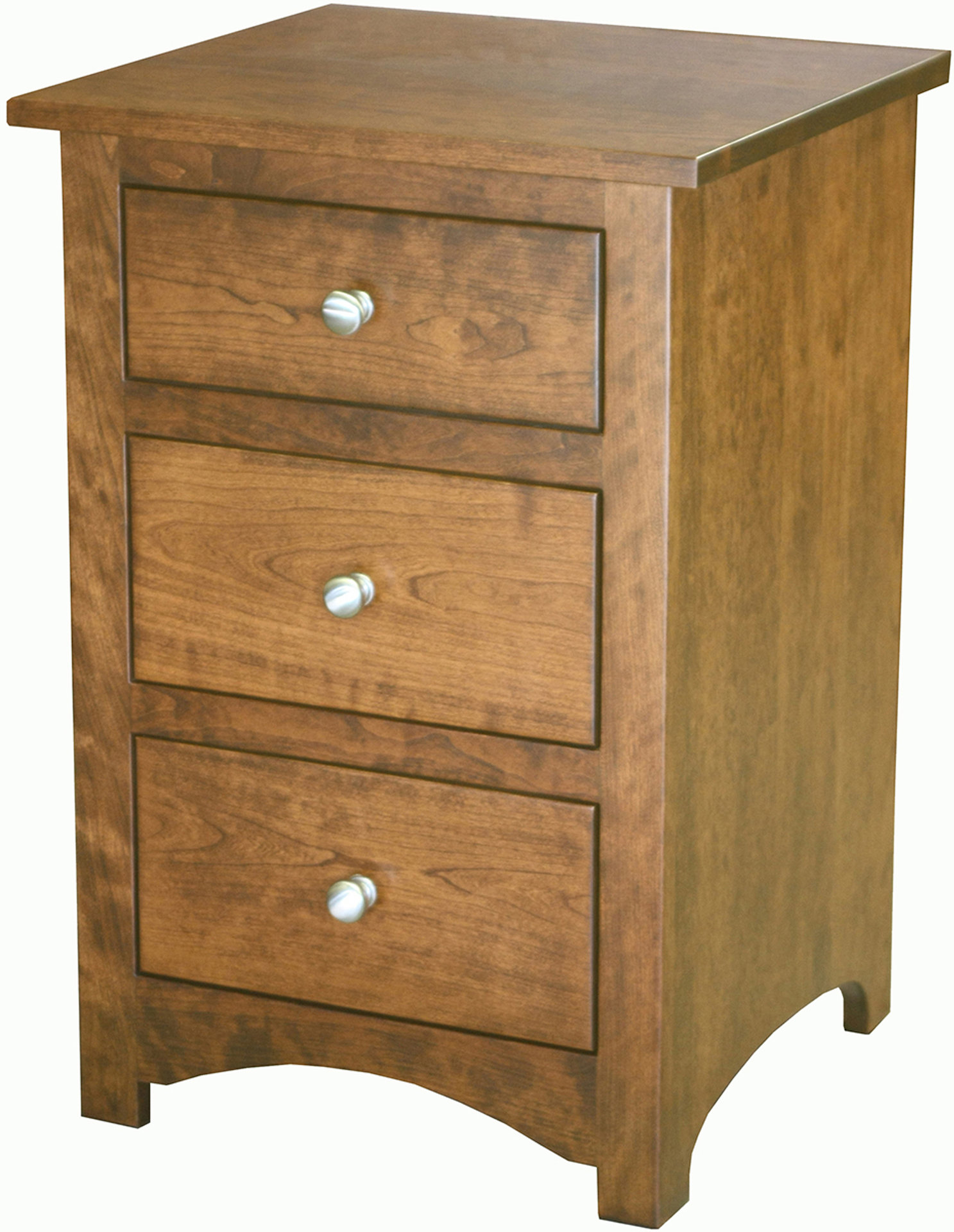 The Shaker Hickory Three Drawer Nightstand is a beautiful piece of furniture that is both practical and classy. Its three drawers are dovetailed with full extension slides, which are just one of our quality features. The closed drawers will give you more storage space to put your nightly reading materials or even another space to store your undergarments. This Shaker Hickory Three Drawer Nightstand is shown in hickory with Michael’s cherry finish and solid black pulls, but can be fully customized to meet the needs of your home. Pair this nightstand with any of our Shaker bedroom pieces for a complete set.
