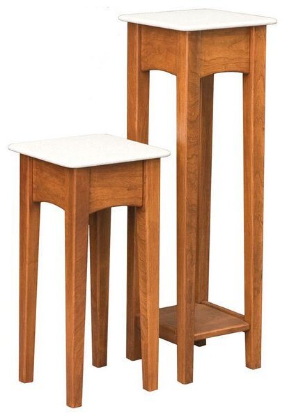 To fit your décor even more, you can choose a hardwood top or any of four solid surface tops: Amber, Goldenbrown, Mist or Shasta. Available as shown or unfinished, the Shaker Plant Stand is customizable.