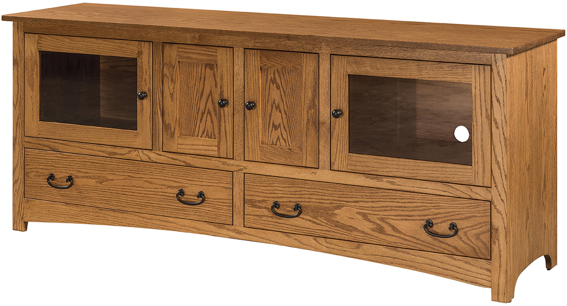 With its flush drawers and doors, plus smoked glass, the Shaker Plasma TV Cabinet reflects understated elegance. The adjustable shelf behind each door helps maximize space. Also, the drawers open full-extension. So you’ll enjoy easy access to every corner of the drawers. While the dovetail drawer joints enhance strength. Options abound. They include a sound bar below the hardwood top. In addition, you can choose mullions in the doors. Wood knobs. And soft-close doors and drawers. Amish artisans build each Shaker Plasma TV Cabinet. So it’s heirloom-quality! Now, make it yours. Simply complete the customizing fields below. With your choices for wood specie, finish and more. Or call 855-768-3270.