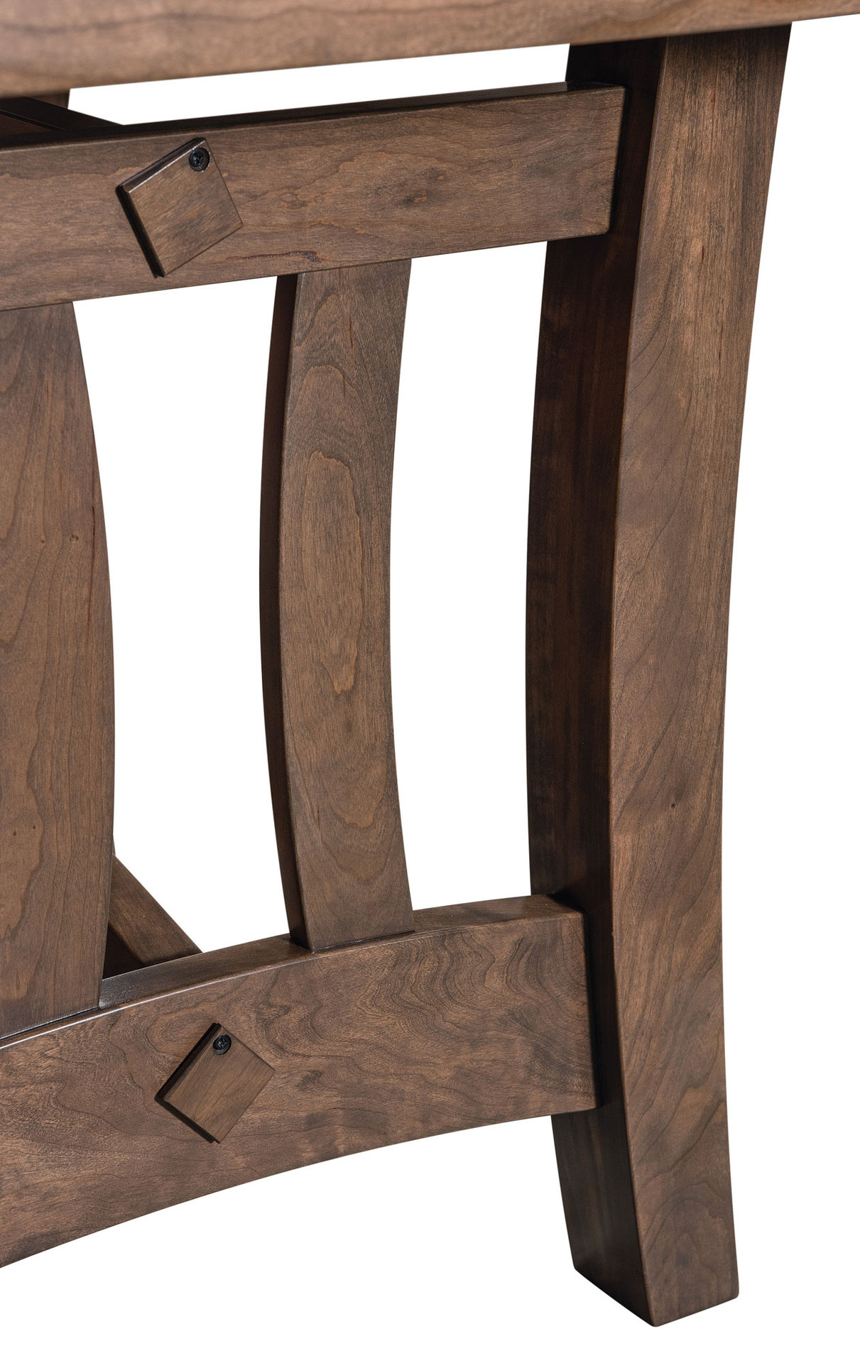 An artful arrangement of curves creates the trestles of the Shelby Trestle Table. Imagine this elegant piece in your upscale dining room! We offer the table in widths of 36 and 42 inches and lengths of 48, 54 and 60 inches. Need a larger table for when family and friends visit? The tabletop easily expands to accommodate up to three 12-inch leaves. Our Amish cabinetmakers build the dining table. And they use top hardwoods like oak, maple and sap cherry (shown with FC-48024 American Antique finish). No wonder the table is so great-looking, sturdy and heirloom-quality! Now, make it yours. Simply complete the customizing fields below. Also, make sure you include your choices for wood species, finish and more. Or call 855-768-3270.