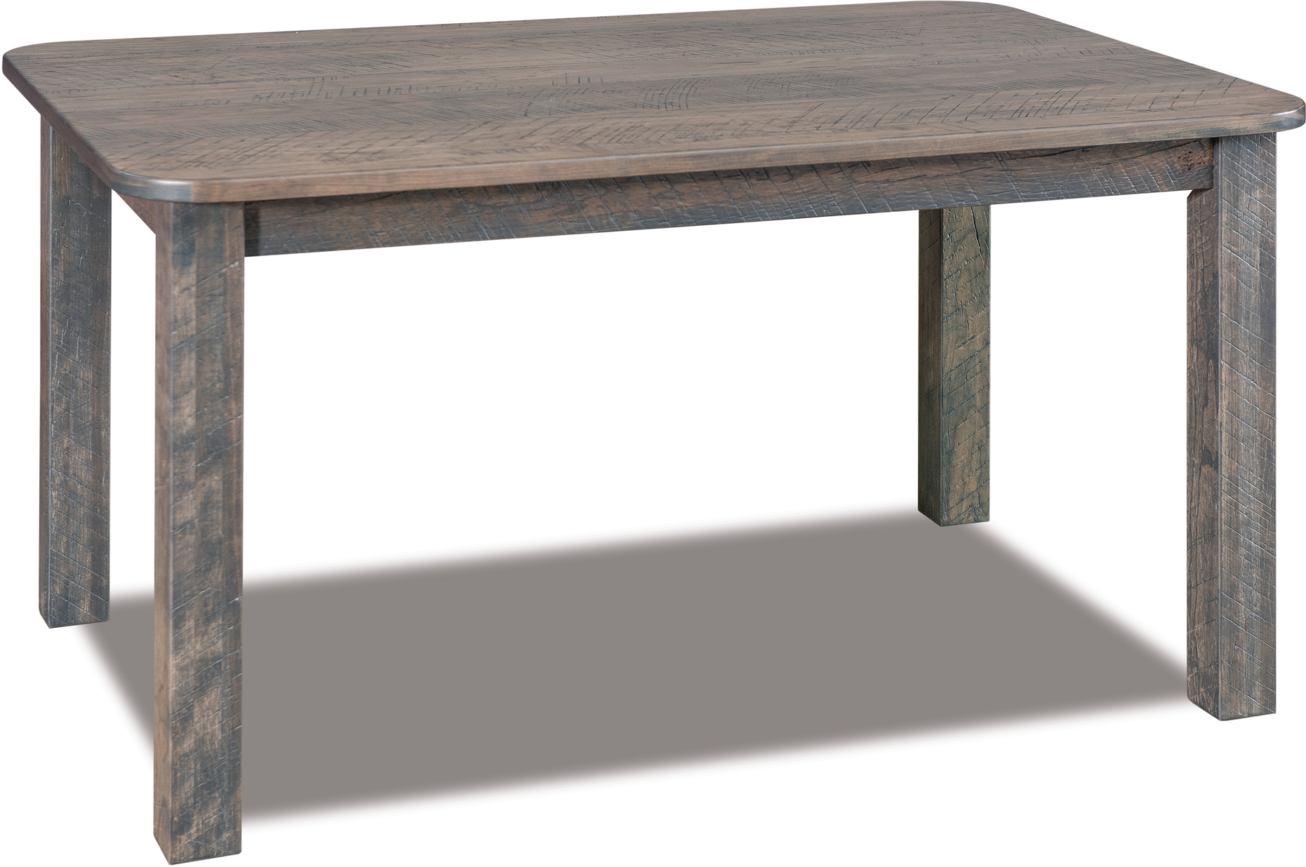 The simplicity of a traditional leg table combines with the strength and durability of Amish solid hardwood construction in the Shiloh Dining Table. Notice the radius rounded corners and the Mission edge. We offer the table in widths of 36 to 48 inches. Also, you can choose lengths from 42 to 72 inches. In addition, you can extend the table with leaves. So you can choose the table in the size that meets your needs and desires. What’s more, we offer up to four self-storing leaves. Our Amish cabinetmakers handcraft each Shiloh Dining Table. Also, they use top hardwoods. Like oak and rustic cherry (shown with Antique Slate stain and textured wood). So the table is heirloom-quality! Now, make it yours. Simply complete the customizing fields below. Also, make sure you include your choices for wood species, finish, and more. Or call 855-768-3270.