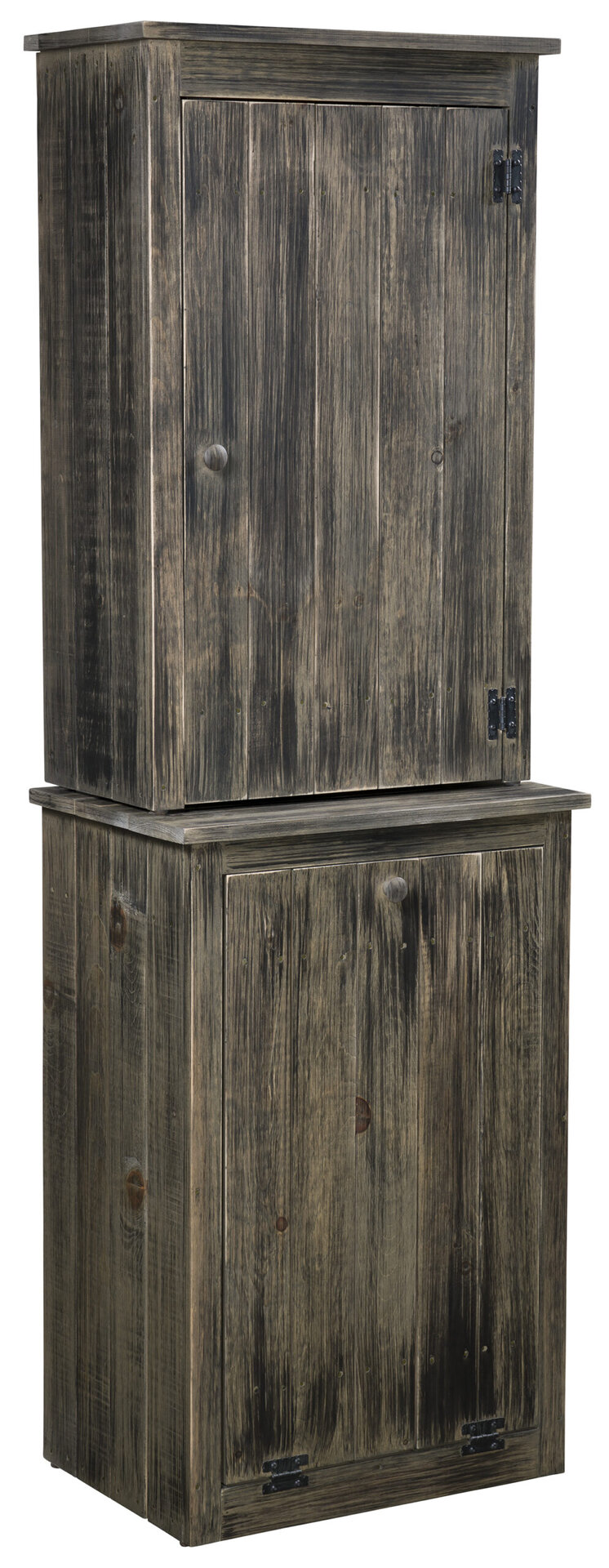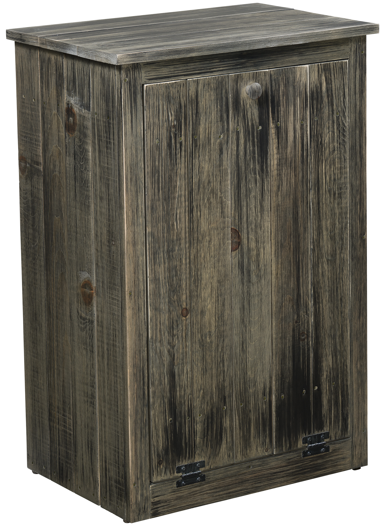 Imagine a pantry storage cabinet and a trash/recycling bin rolled into one. That’s the Single Trash Bin with Hutch. The visible saw marks, rustic finish and optional metal inserts give the piece its rustic vibe. Cabinet space behind the top door is ideal for storing your pantry items. While the door down below opens forward to access the waste/recycling bin (not included). Our Amish cabinetmakers handcraft the hutch from all new pine wood. No wonder the piece is so sturdy, it’s heirloom-quality! Now, make it yours. Simply fill out the customization fields below. Also, make sure you tell us your choices for wood species, finish and more. Or call 855-768-3270.