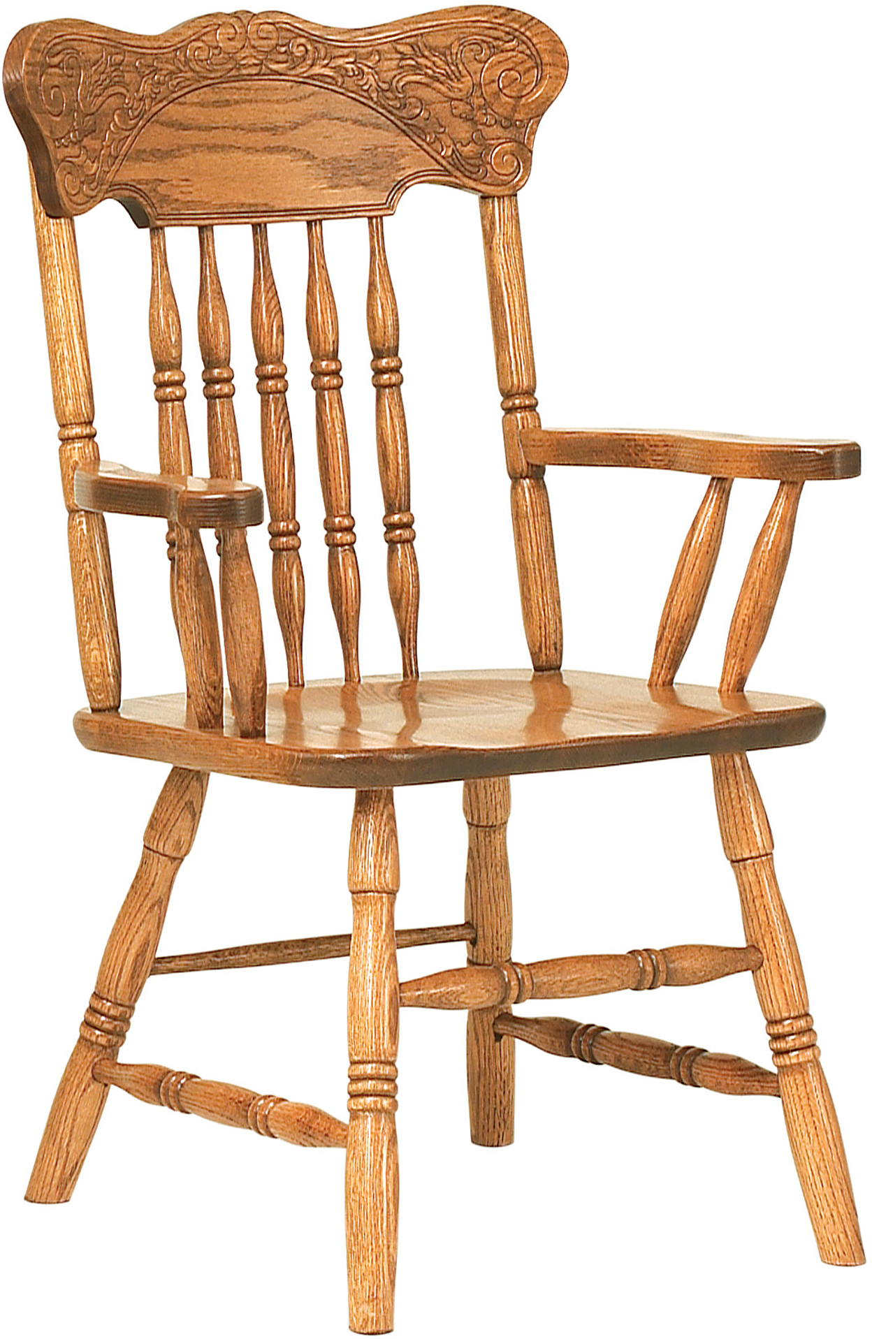 The Spring Meadow Pressback Chair has hand turned legs and spindles with beautiful scrollwork on the chair back. Our Amish craftsmen make this traditional style chair from the finest hardwoods. This Spring Meadow Pressback Chair will have you reminiscing about your grandma’s kitchen. It gives you the chance to make your own memories with your children and grandchildren. You see it here in oak with golden honey stain. However, it also comes in cherry and your choice of finish. Also, you may want to pair it with a Spring Meadow Pressback Caster-Based Desk Chair and Swivel Barstool for a perfectly coordinated look to your chairs.