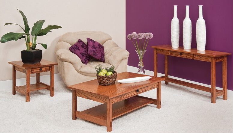 A Mission-style design, copious open storage space plus legendary Amish solid hardwood construction place the Springhill Open Occasional Table Collection at the head of the pack. So it’s a superb choice for your living room. Indeed, its fully inset drawers, diamond-shaped knobs and exposed tenons enhance its eye appeal.