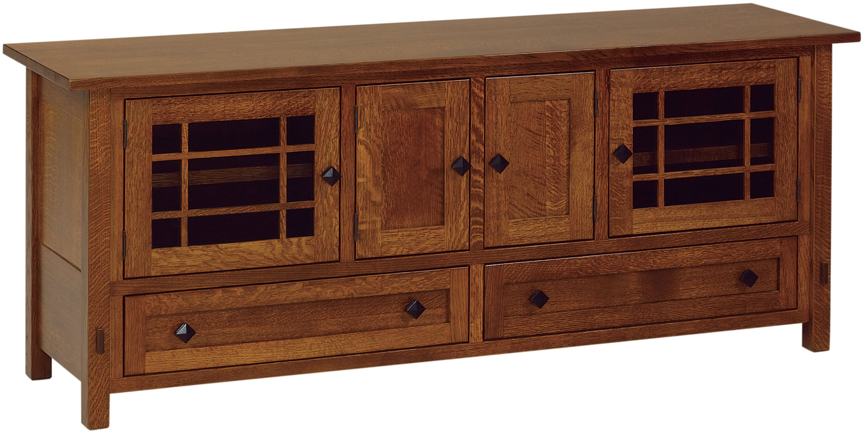 The collection is available as shown or unfinished. Or, we can customize your chosen TV console to your specs. So tell us your wishes. Like the wood specie, finish and hardware. Then, you may pick up your furniture at our ‘brick and mortar’ store in Shipshewana, Indiana. Or, we can ship it to any address in the continental United States.