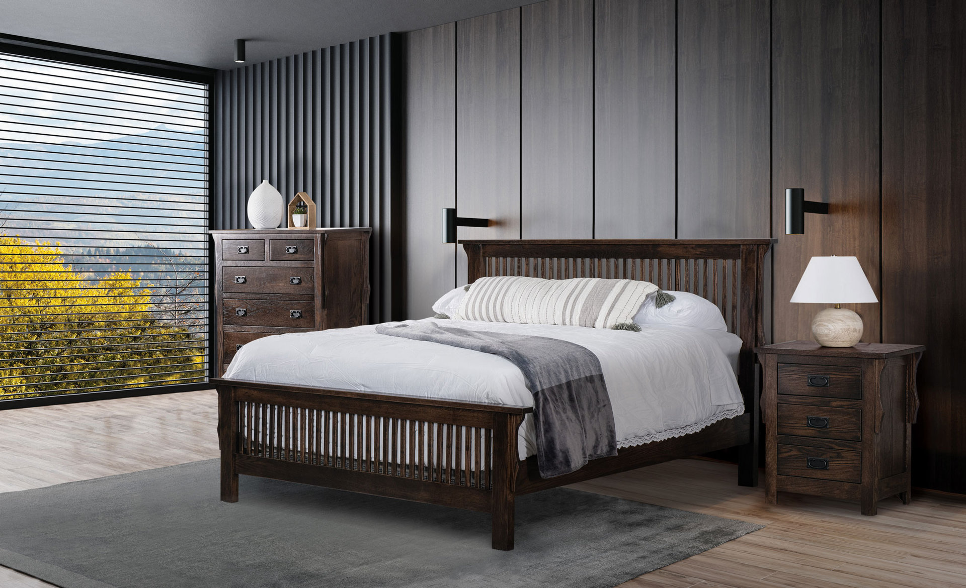 The straight lines, slats and decorative corbels of the Mission style make the Stick Mission Low Footboard Bed a great find. What an attractive bed for your home! You can order the bed in the size that best meets your needs and desires: queen (shown), king, California king, full or twin. Our Amish cabinetmakers build the bed. And they use top hardwoods like maple, cherry and oak (shown with Charwood stain). No wonder the bed is so great-looking, sturdy and heirloom-quality! Now, make it yours. Simply complete the customizing fields below. Also, make sure you include your choices for wood species, finish and more. Or call 855-768-3270.