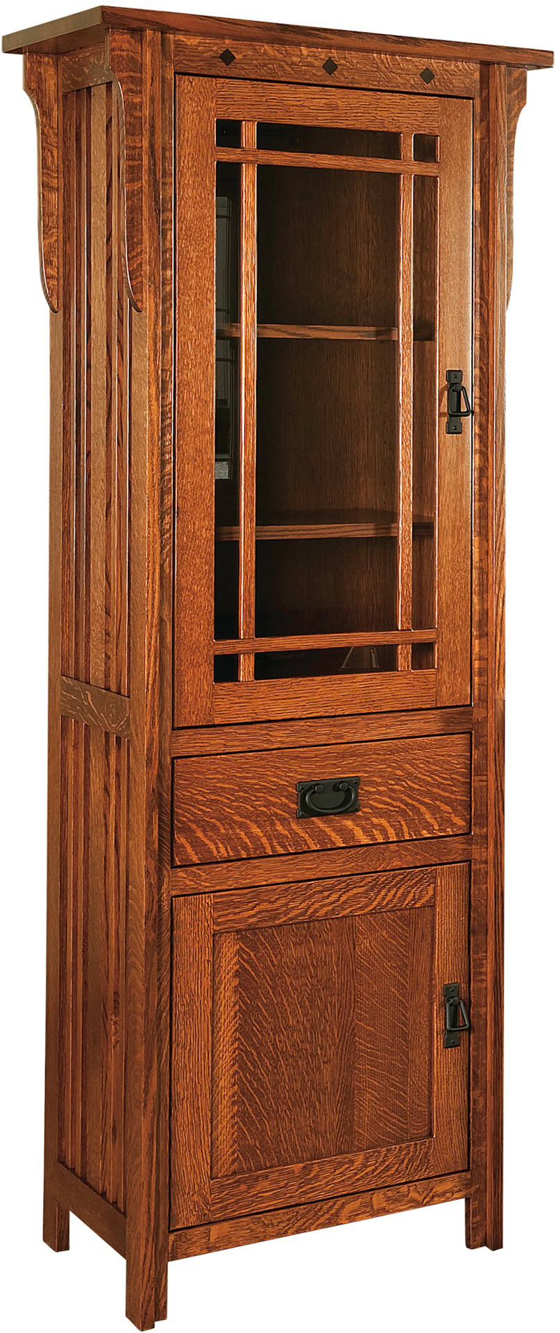 Skilled Amish craftsmen painstakingly handcraft the Straight Royal Mission Console and Towers. And the Amish men use quality Midwestern hardwoods like cherry, maple and oak. They also draw from skills handed down from their ancestors. That’s why you can expect the unit to be towers of performance for generations to come. You can order the console and towers separately. Also, you can order the towers as shown of unfinished. Or we can customize them to your heart’s content.