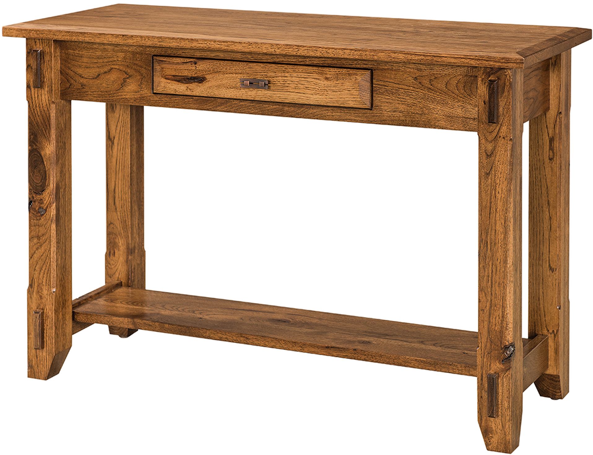 With its Mission-style boldness, exposed tenon accents and open design, the Tacoma Open Sofa Table is sure to enhance the ambience of your living room. So imagine this table decked out with your favorite flowers, table lamp and photos! Also, the drawer opens full-extension. So you’ll gain easy access to everything inside. While its dovetail joints speak to the durability of the table. Amish artisans build each table. And they use top hardwoods. Like cherry, maple and oak. So the Tacoma Open Sofa Table is heirloom-quality! Options abound. They include a soft-close drawer. A live edge top. Also an attached power strip. Now, make it yours. Simply complete the customizing fields below. With your choices for wood specie, finish and more. Or call 855-768-3270.