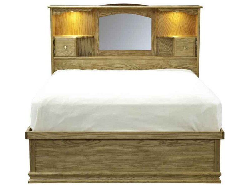 Amish cabinetmakers painstakingly craft each Traditional Captain’s Bed. And they use solid Midwestern hardwoods, plus skills handed down from their ancestors. So you can expect the bed to serve your family for decades to come. The bed is available in king or queen sizes. And you can order just the headboard or the platform. Also, we made the bed easy to assemble with bolts only — no screws. You can order the bed as shown or unfinished. And we can customize it to your specs. Wood options include oak, maple, cherry, hickory, walnut and gray elm.