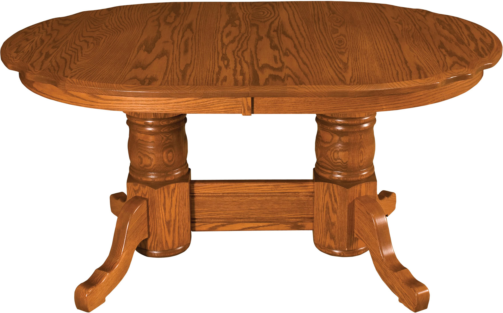 The Traditional Scallop Dining Table has a unique 1″ scalloped oval top and bevel edge with two pedestal bases. The scalloped edge adds a definite style and uniqueness to this traditional table. There are so many options available on this table that is could quite possibly be the perfect table for everyone. Classic empire feet come standard as you see here. However, it is also available with claw feet. Additionally, if you like the tabletop, but are looking for a single pedestal table we can customize it to fit that need as well. Also, we can add a sheaf or spindle rail between the two pedestals. Maybe you are looking for an extension table to use in a banquet room. This table can become that, too. We will simply add up to 12 leaves with drop legs that support both ends.