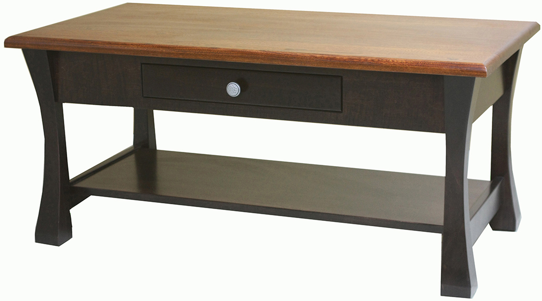 The Vandalia Open Coffee Table catches the eye with its curved profile, open design and rich, solid hardwood construction. Also, the drawer opens full-extension. So getting items into and out of the drawer couldn’t be easier! In addition, the dovetail drawer joints are incredibly sturdy. Amish artisans handcraft each coffee table. Also, they use top hardwoods. Like oak, cherry and rustic hickory (shown with Tavern Stain). So the Vandalia Open Coffee Table is heirloom-quality! Options abound. They include a soft-close drawer. A live edge top. Or, you can opt for a lift-top coffee table. Now, make it yours. Simply complete the customizing fields below. With your choices for wood specie, finish and more. Or call 855-768-3270.