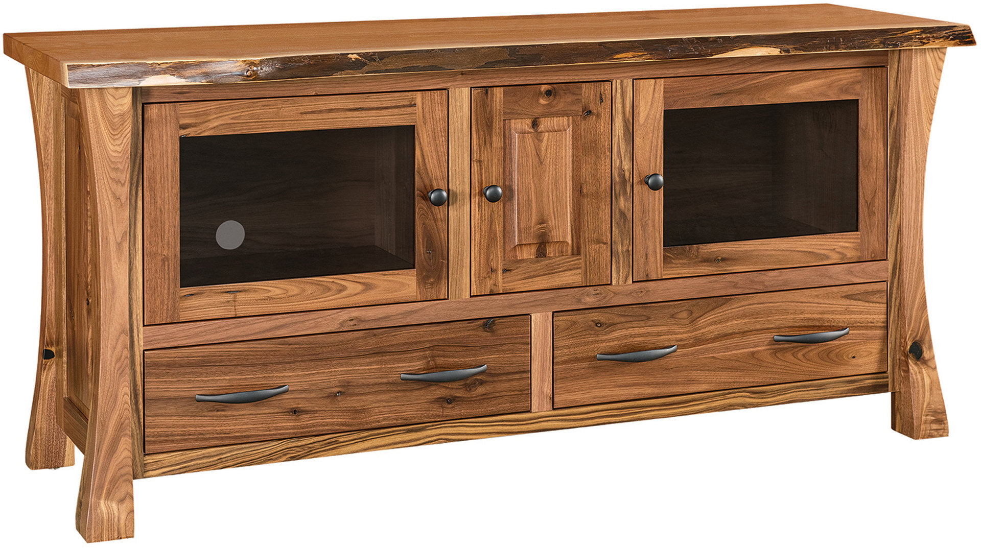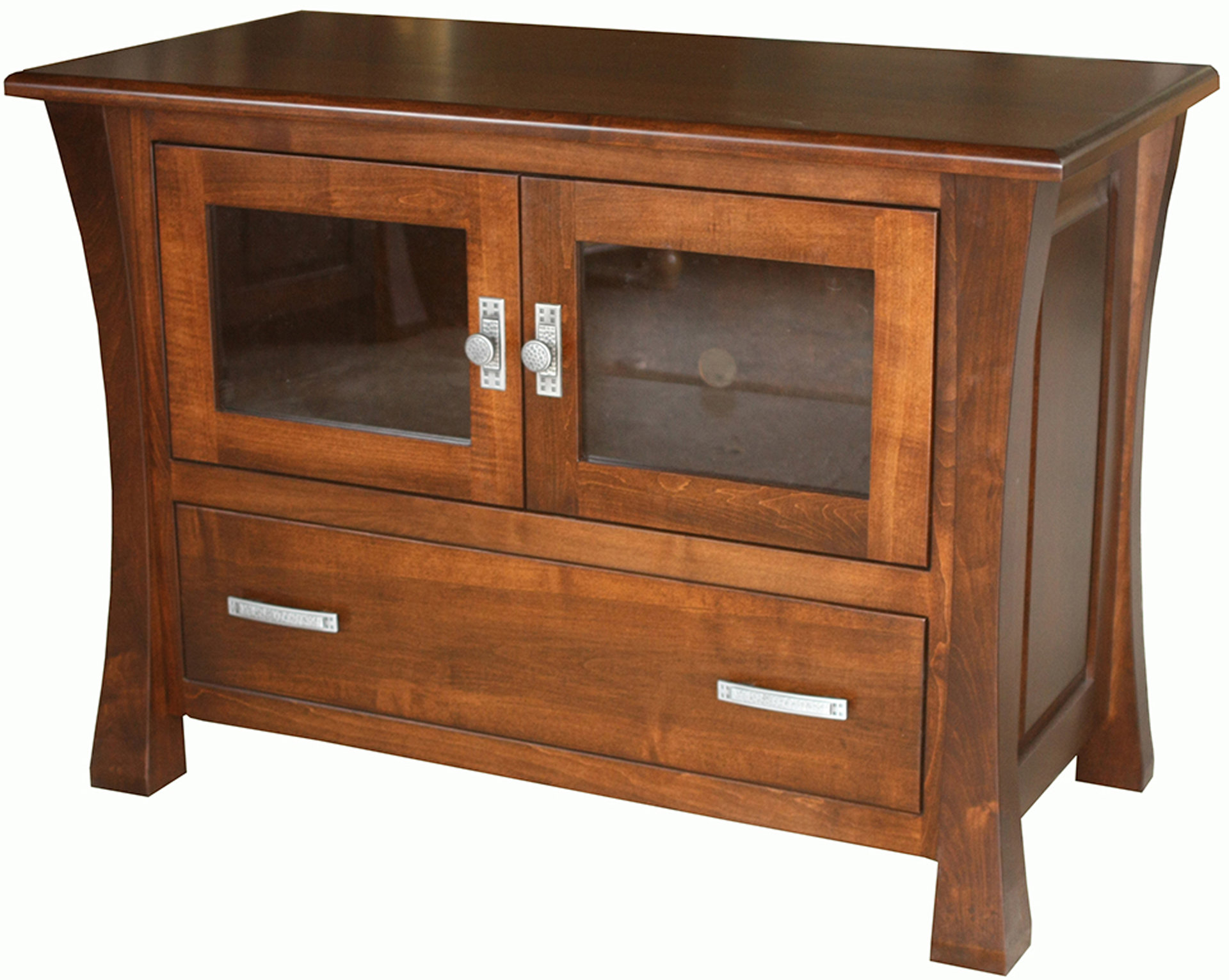 A curved profile, raised panel sides and doors, plus flush drawer fronts. These are some of the key features of the Vandalia Plasma TV Cabinet. So choose the small, medium, large or extra-large size. And you’ll get the best-looking, best-built TV cabinet available. Because Amish artisans custom-build each unit. Also, they use top hardwoods. Like oak, cherry and maple. So the Vandalia Plasma TV Cabinet is heirloom-quality! Need more evidence? The drawers open full-extension. So you’ll enjoy easy access to everything. Also, dovetail joints enhance its strength. Options abound. They include soft-close doors and drawers. A live edge top. Plus a sound bar. Now, make it yours. Simply complete the customizing fields below. With your choices for wood specie, finish and more. Or call 855-768-3270.
