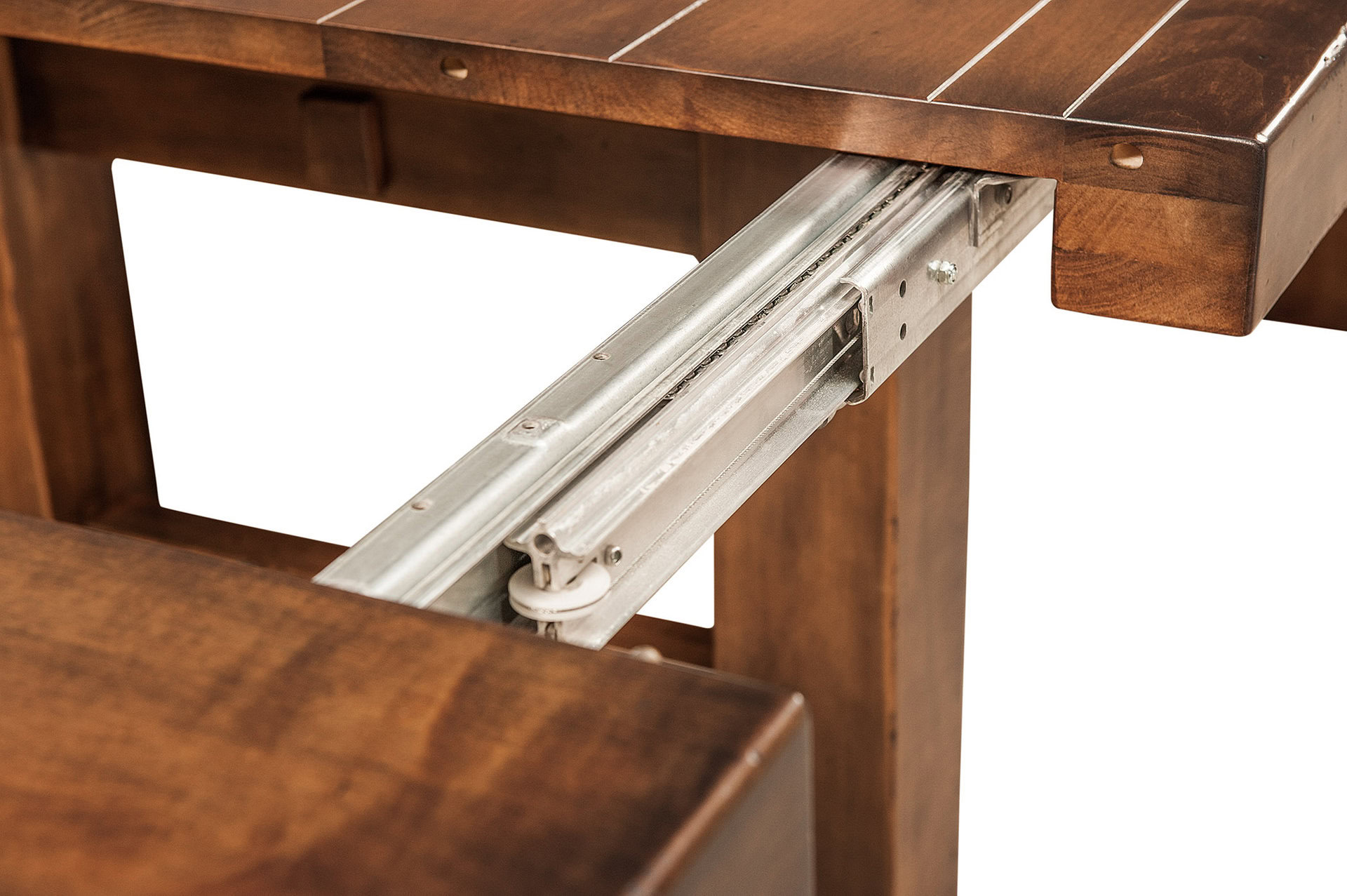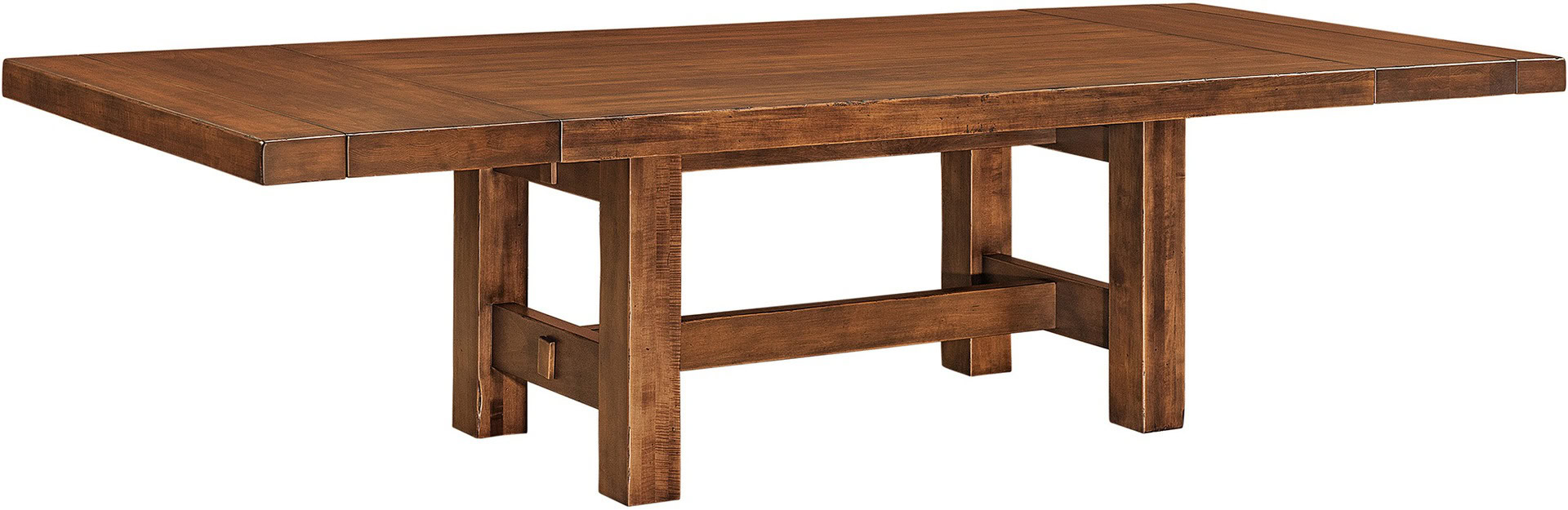 The Wellington Trestle Table is a beautiful farmhouse table. Our Amish artisans make this table with only the best quality craftsmanship and style. In fact, everything about this table is substantial. You can see this from its three-inch thick tabletop to the 88-inch table length. You even have the option to add up to two 16″ leaves to extend the length of this table even further. The beautiful table top has random grooves with breadboard ends. It truly is a functional piece of art that you will be proud to display and use in your home. Be sure to specify brown maple wood species with worn spice medium distressed 10-sheen stain if you want your Wellington Trestle Table to look the same as the one pictured here.
