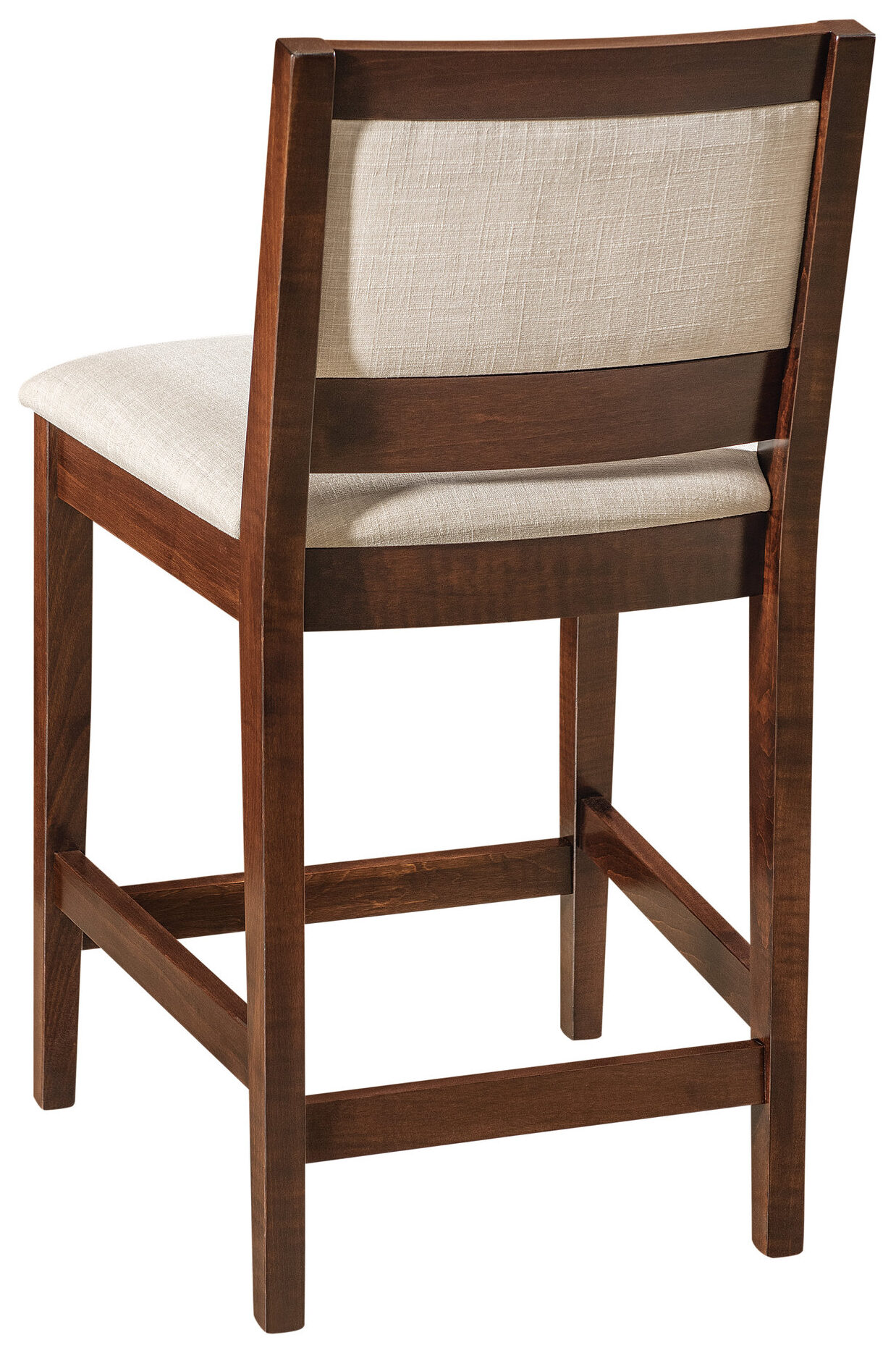 With its clean lines and padded seat and back, the Wescott Bar Chair is poised to add comfort and elegance to your kitchen counter area and/or your in-home bar. We’re showing the chair in 23-9 Turbo Fabric. It’s one of the plethora of fabrics – and leather – available. Amish cabinetmakers custom-build each chair. Also, they use top hardwoods. Like maple, cherry, oak, walnut and elm. So the Wescott Bar Chair is very sturdy. Beautiful. Also heirloom quality! Ready to order? Click the “Customize this product” button below. Then, complete the “Customize Product” fields. Also click the “Get your customized quote” button. Or call 855-768-3270.