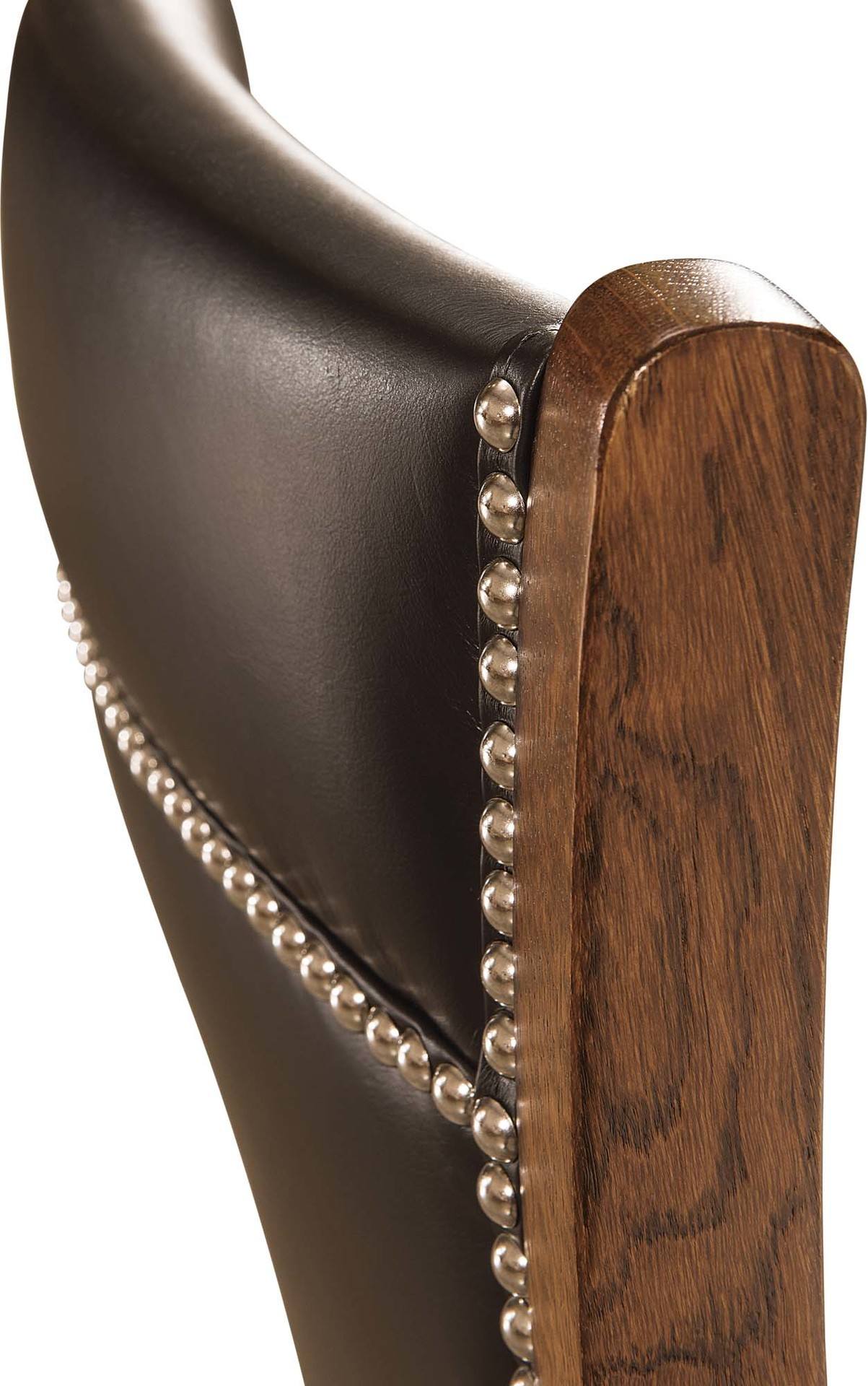 The Wyndlot Desk Chair has beautiful rounded arms with a solid wood base. It comes with either a leather or fabric seat and back. It adjusts up and down so you can always find the most comfortable position. The caster-base allows you to move around your office effortlessly. Thus, easily allowing you to access your files, printer, fax, etc. If you like how you see it here be sure to order it in quarter-sawn white oak with Asbury stain, black leather and nickel tacks. However, if you are looking for something different you can customize it to meet your needs. First, choose your favorite wood species and leather or fabric for the seat and back. Next, decide which of the six different tack options you prefer. Finally, consider pairing this Wyndlot Desk Chair with any of our solid wood desks.