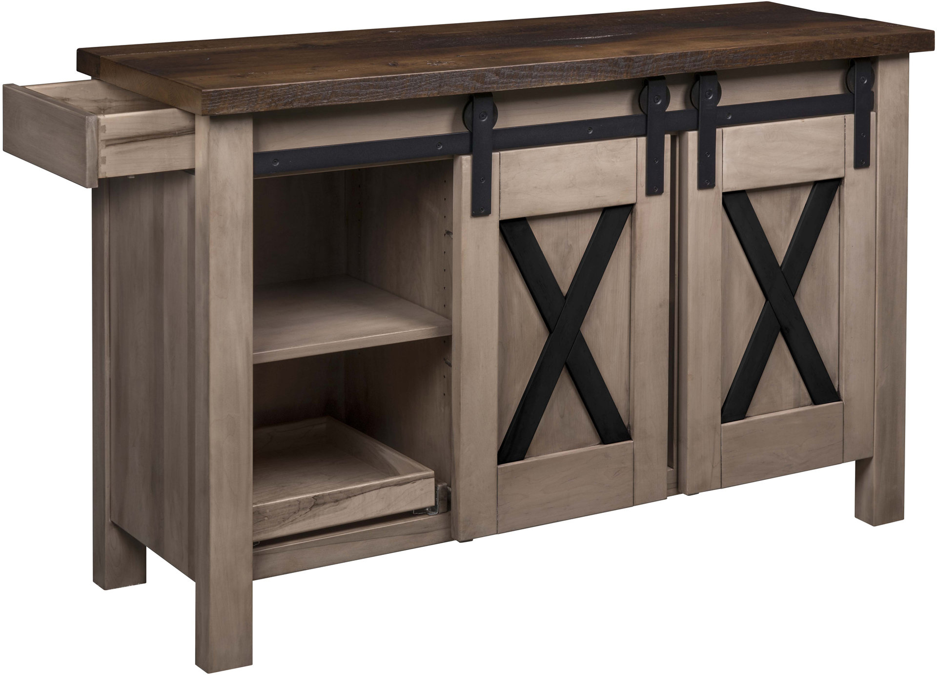 Bring the rustic farmhouse look to your dining room with the Xavier Small Sideboard. The tabletop features reclaimed oak barn wood with FO-804 stain, while the cabinet is brown maple with FC-108 Limed Oak with FC-19330 Appleosa glaze. You’ll love the other cool features, like the sliding doors with barn tracks. Also, there’s a pullout drawer behind each door and a push-to-open drawer on both ends — right below the top. Options include a wine rack and a wine glass holder in the center, and no pullout drawers. Our Amish cabinetmakers build the buffet from solid hardwoods. No wonder the piece is so sturdy, it’s heirloom-quality! Now, make it yours. Simply fill out the customization fields below. Also, make sure you tell us your choices for wood species, finish and more. Or call 855-768-3270.
